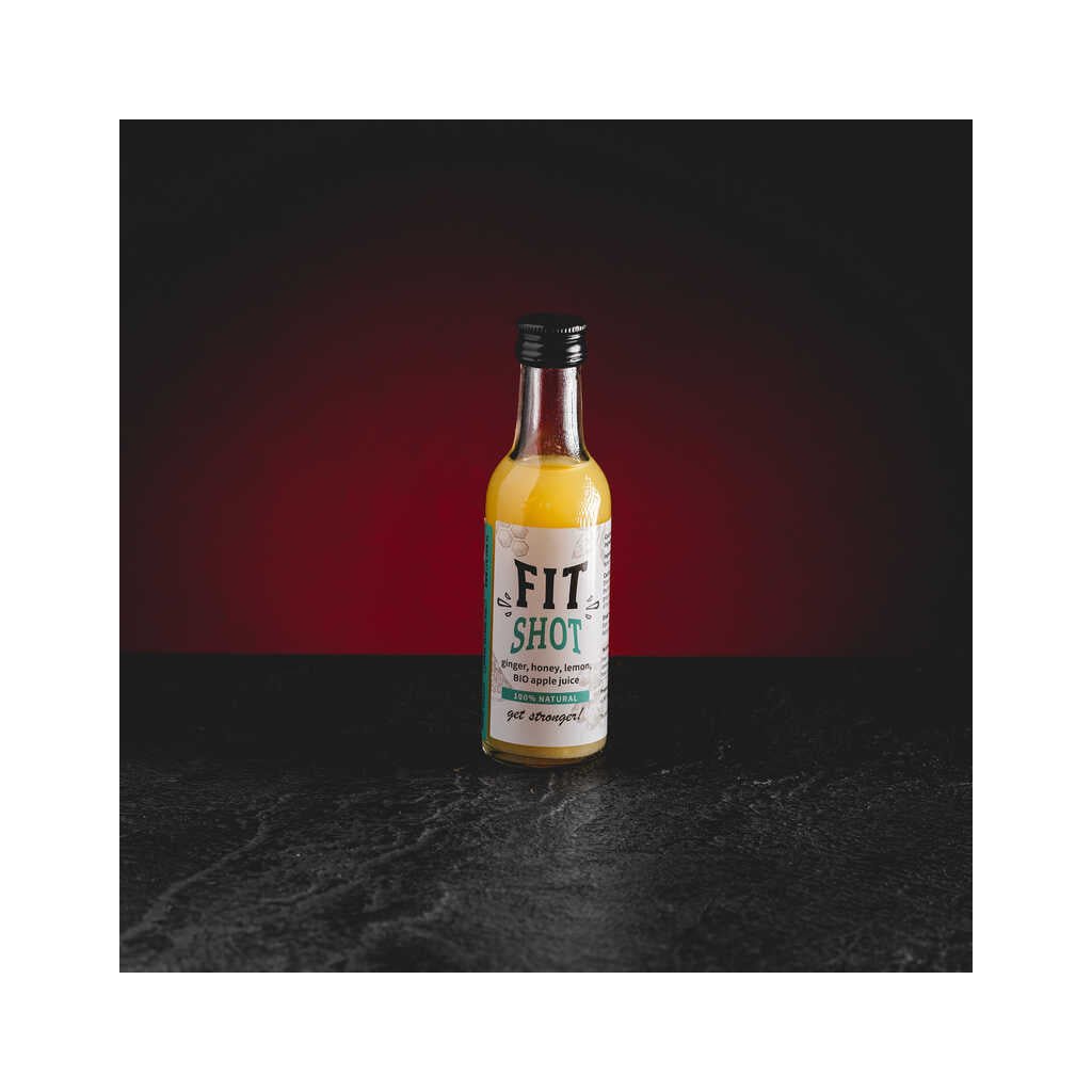 Fit Shot: Eine deutliche Geschmacksexplosion und lebendige Energie – wir präsentieren unsere Neuheit, den angereicherten Ginger Shot. Dank der Kombination aus frischem Ingwer, köstlichem Honig, erfrischendem Apfelsaft und saftiger Zitrone bietet unser Ginger Shot nicht nur anregende Energie, sondern unterstützt auch die Schmerztoleranz und stärkt die Immunität. Bereiten Sie sich auf ein intensives Geschmackserlebnis vor und laden Sie Ihren Körper mit jedem Schluck Ginger Shot mit Energie auf! Zutaten: BIO Apfelsaft 40%, Ingwersaft 30%, Honig 15%, Zitronensaft 8%, Kokoswasser 7%