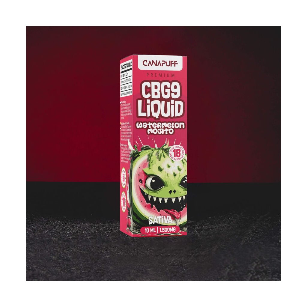 CBG9 e-liquid with 1500mg CBG9 content and Watermelon Mojito flavor.