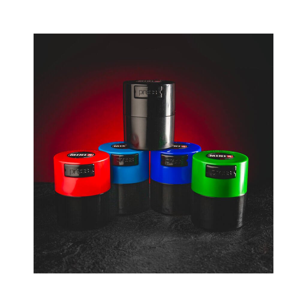 Opaque airtight box Tightvac, volume 60 / 120 ml in various color designs. It does not let odors out or in. Height 7.6 / 7.4cm, diameter 4 / 6cm. Color chosen randomly.