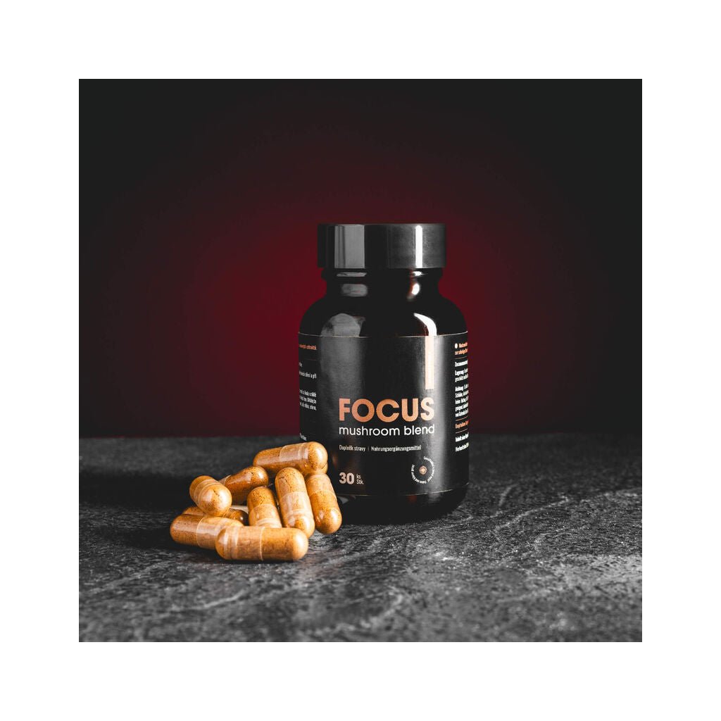 Focus Mushroom Blend je speciální směs houbových extraktů navržená k okamžité stimulaci a zlepšení kognitivních funkcí. Tato směs obsahuje Cordyceps, Reishi, Chaga a Lion's Mane, které společně poskytují jedinečné benefity pro vaši mysl a tělo.