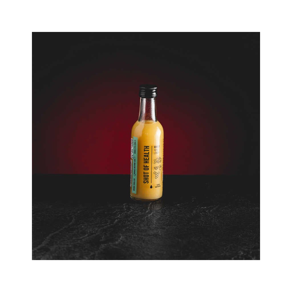 Shot of Health: Z kombinace zázvoru, medu a citronu se zrodil: Shot všech Shotů. U něj to všechno začalo. Je základem našich chuťových variací. Když jsme se dozvěděli o jeho schopnostech, věděli jsme, že je to ten pravý: pečuje o vaše zdraví, motivuje vás a dodává vám energii a podporuje vás při hubnutí. Složení: Zázvorová šťáva 57%, med 20%, citronová šťáva 15%, kokosová voda 8%
