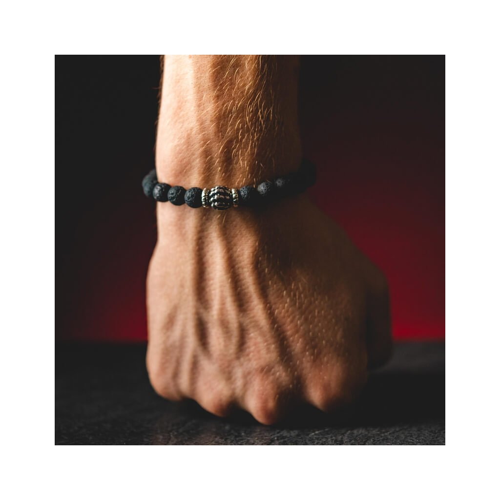 Náramek je složen z lávových kamenů, z lístků a semínka Kratomu.